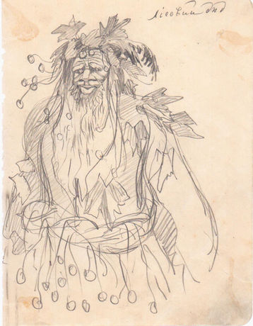У 1912 році Садовський ставить виставу «Зачароване коло» за п’єсою польського драматурга Люціана Риделя у музичному оформленні Олександра Кошиця. «Зачароване коло» мало сенсаційний успіх в українському театрі. Живописні декорації Бурячка відзначали практично всі рецензенти, так само як і сценічні ефекти, що були використані у виставі. Побачити як виглядали костюми та декорації вистав можна зі світлин, що збереглися в колекції МТМКУ. Наприклад, костюми Лісовика та Чорта Борута з «Зачарованого кола» передають майстерність художника у створенні містично-казкового образу. Про Є. Рибчинського, який грав роль Лісовика писали, що «Артист бере з початку вірний символічний тон і з успіхом додержує його до останнього моменту, а красиве архаїчне вбрання і грим, якнайкраще обмальовують цю фігуру, що представляє природу»