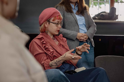 The meeting was opened by Myroslav Tsyganyk and Oleh Oneshchak. In their welcoming remarks, they emphasised the importance of lively dialogue between students and practitioners of the contemporary scene, stressing that such events create a new space for creative exchange and professional growth.